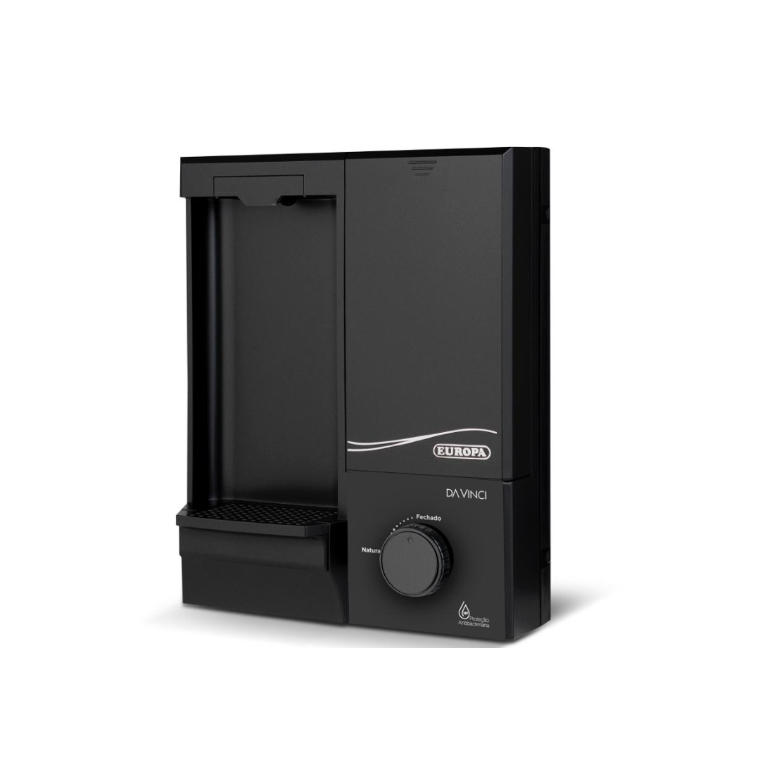 O purificador de água natural Europa Da Vinci preto possui a menor espessura da categoria deixando qualquer cozinha mais elegante. Com possibilidade de incorporar o módulo HF é possível ter um dos mais avançados processos de filtro e purificação. Sistema de purificação SNTA Filtra e purifica a água previamente tratada através de elementos naturais, como dolomita, quartzo e carvão ativado impregnado com prata. Absorve o cloro, remove impurezas e reduz substâncias químicas, orgânicas e turbidez. * Purificador de água com Sistema Natural de Tratamento de Água (SNTA). * Filtra e purifica a água previamente tratada (por estação concessionária de tratamento de água) através de elementos naturais, como dolomita, quartzo e carvão impregnado com prata. * Filtra impurezas sólidas, adsorve o cloro e reduz substâncias químicas, orgânicas e turbidez. * Cuba removível e grade em ABS cromada para facilitar a limpeza. * Tampa removível fumê, que possibilita a troca da câmara pelo próprio usuário. * Certificação IFBQ – Aparelhos Para Melhoria da Água para consumo humano – Classificação máxima em Retenção de Cloro (C-I).